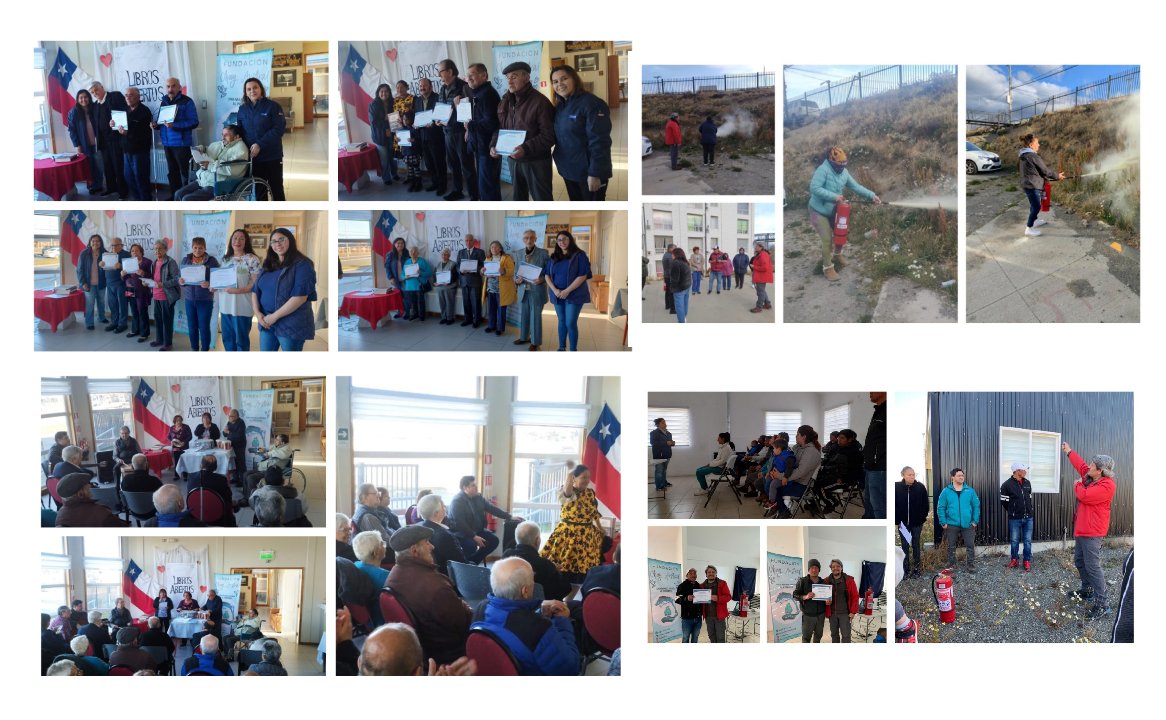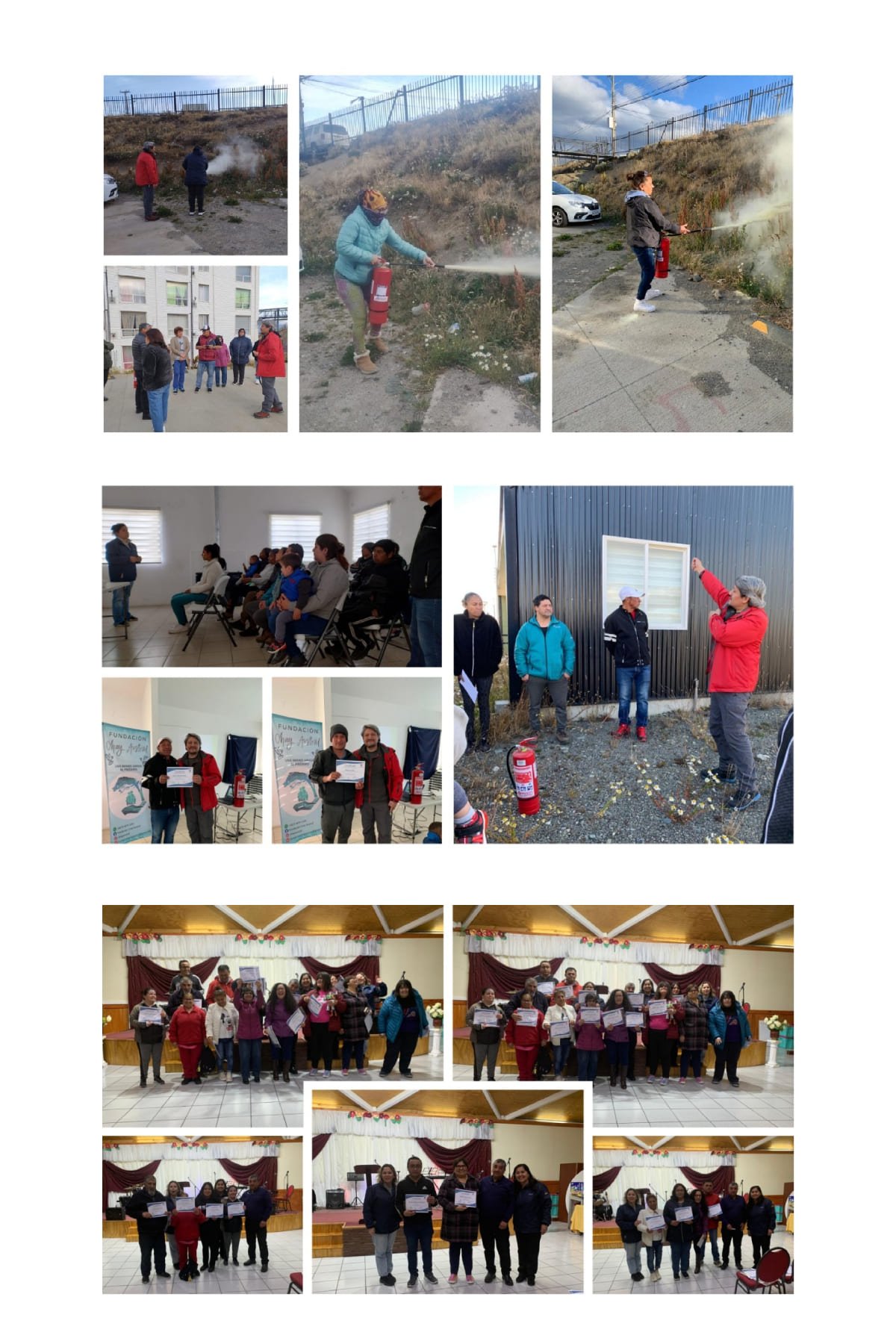 1. Capacitación a un grupo de vecinos de la comunidad archipiélago de Chiloé y Campamento Villa las Etnias, para conocer sobre la mantención y buen uso de equipos y extintores instalados en sus territorios. Esto ayudará a mantener un adecuado cuidado y uso de estos, además de conocer la ubicación de los dispositivos de descargas, y puedan acceder a ellos en el momento de un siniestro logrando actuar oportunamente para evitar pérdidas mayores en los departamentos y o viviendas dando tiempo a los bomberos para su llegada